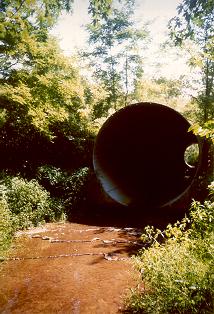 The pipe where the branch flows under the road