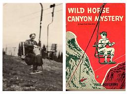 | Paul travelled to different parts of the country to get ideas for his books. Below left, Jane rides the world's longest chair lift on Ajax mountain in Colorado. Below right, the Sugar Creek Gang book it was featured in. |